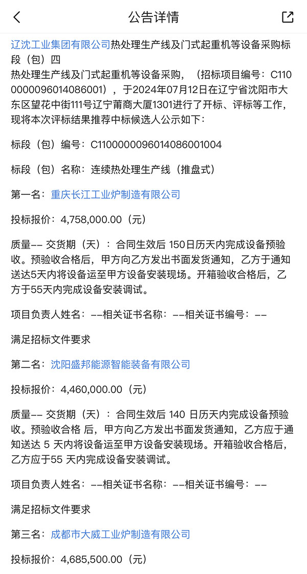 品质源于实力 以最高价拿到 军工 沈阳724厂 《军品热处理 调质 智能生产线1条》 感谢评标委员会 各位专家们 对我们的信任与认可
